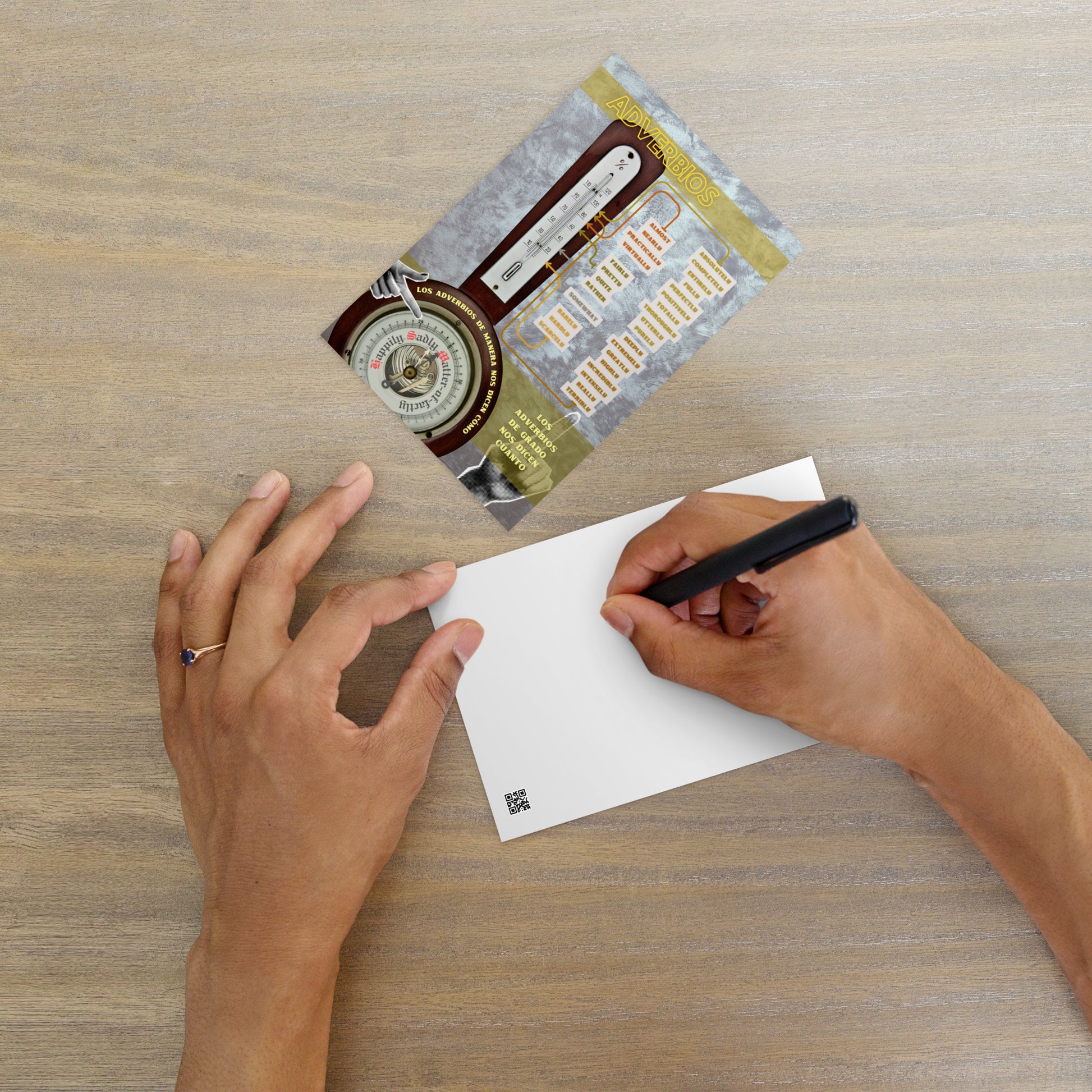 Esta serie de fichas de referencia tamaño postal, cuidadosamente diseñadas, tiene como objetivo ayudar a los estudiantes de inglés como segundo idioma (ESL) a lograr un vocabulario en inglés más amplio. Estas fichas, compactas pero completas, son el compañero ideal para hablar con confianza y claridad. Esta presenta un gráfico para ayudar a recordar las detalles claves de los adverbios y, de ese modo, enriquecer la conversación.