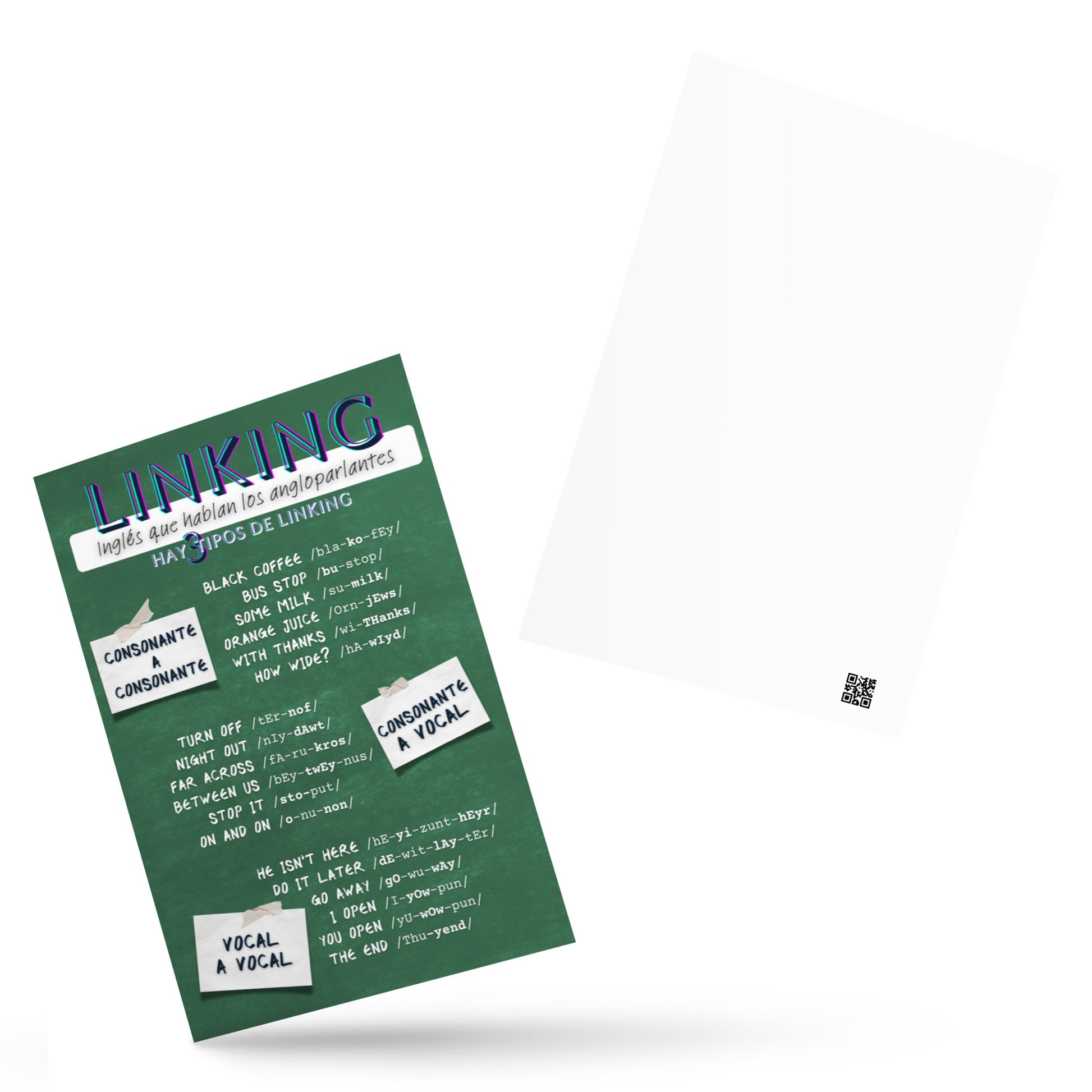 Esta serie de tarjetas de referencia tamaño postal, cuidadosamente diseñadas, está diseñada para ayudar a los estudiantes de inglés (EFL/ESL) a mejorar sus habilidades de escucha y su comprensión general del inglés hablado. Estas tarjetas, compactas pero completas, son la herramienta perfecta para escuchar con confianza y claridad. La tarjeta incluye un gráfico con ejemplos que ayuda a recordar el flujo natural del idioma inglés.